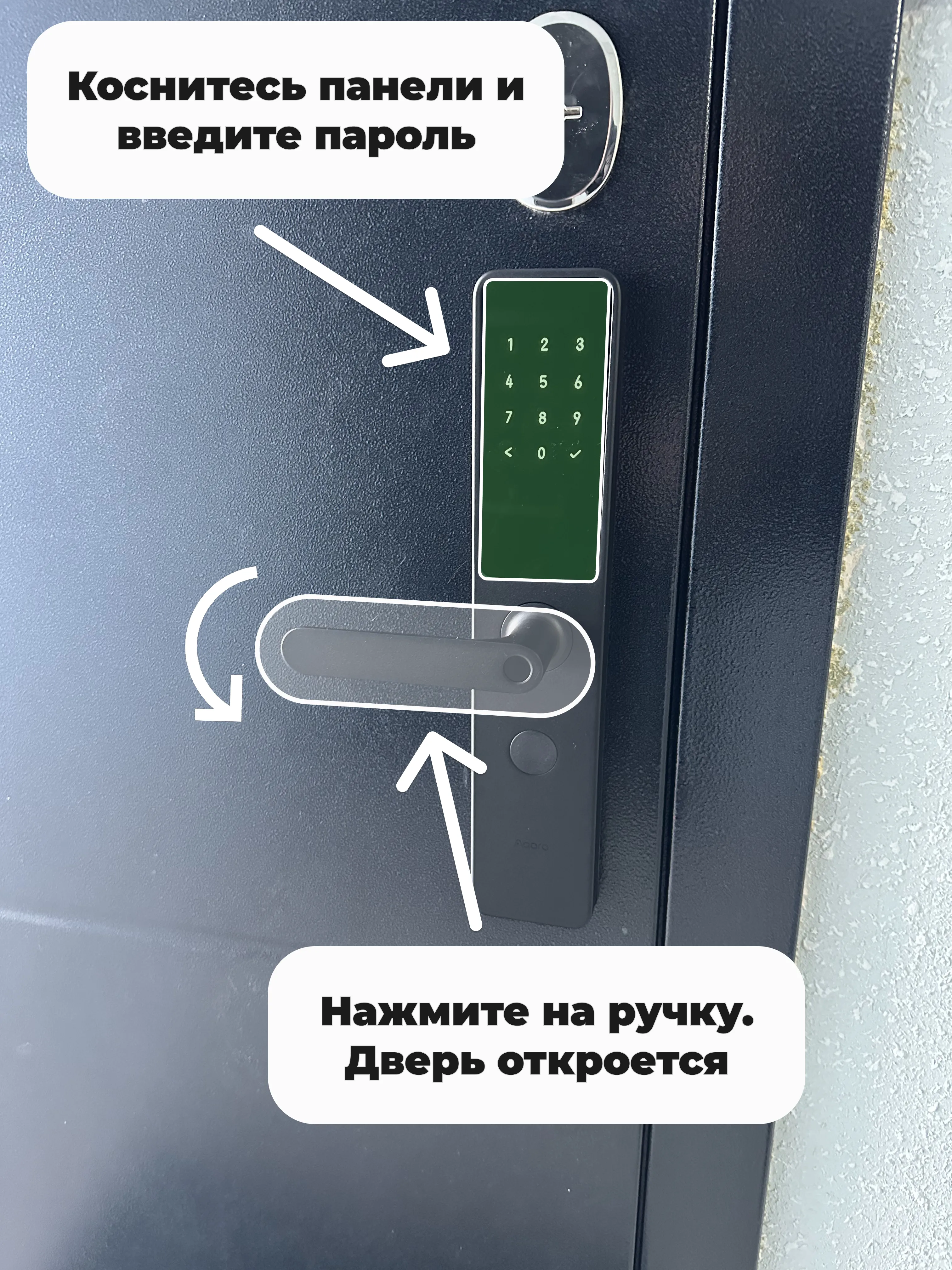 Входная дверь оснащена электронным замком для простоты бесконтактного заселения